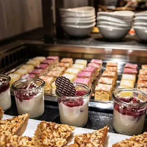 Die Gäste genießen ein Frühstücksbuffet im Restaurant. Das À-la-carte-Restaurant Baldura im Spreewelten Lübbenau bietet viele leckere Gerichte zum Abendessen an.